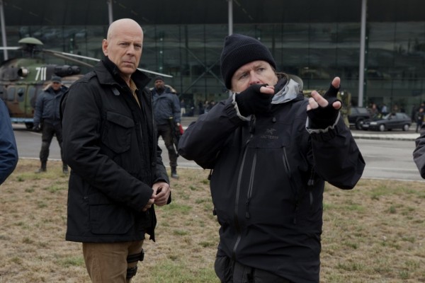 I remember one scene with Bruce Willis, Arnold Schwarzenegger and Sly at the end of the film, saying goodbye to the girl on the helicopter. Every time you put those three together on camera your hair stands up on end. They’re just such movie stars and they’ve never been in the same frame together – even in the first one they were shot in singles. So it would have been quicker to shoot them all one a time, but I said “I, and the audience, want to see you all together as much as possible.”