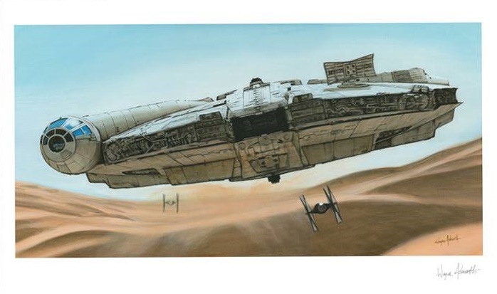 A friend of mine, Wayne Ashworth, painted this beautiful image of the Millennium Falcon from Star Wars: The Force Awakens.