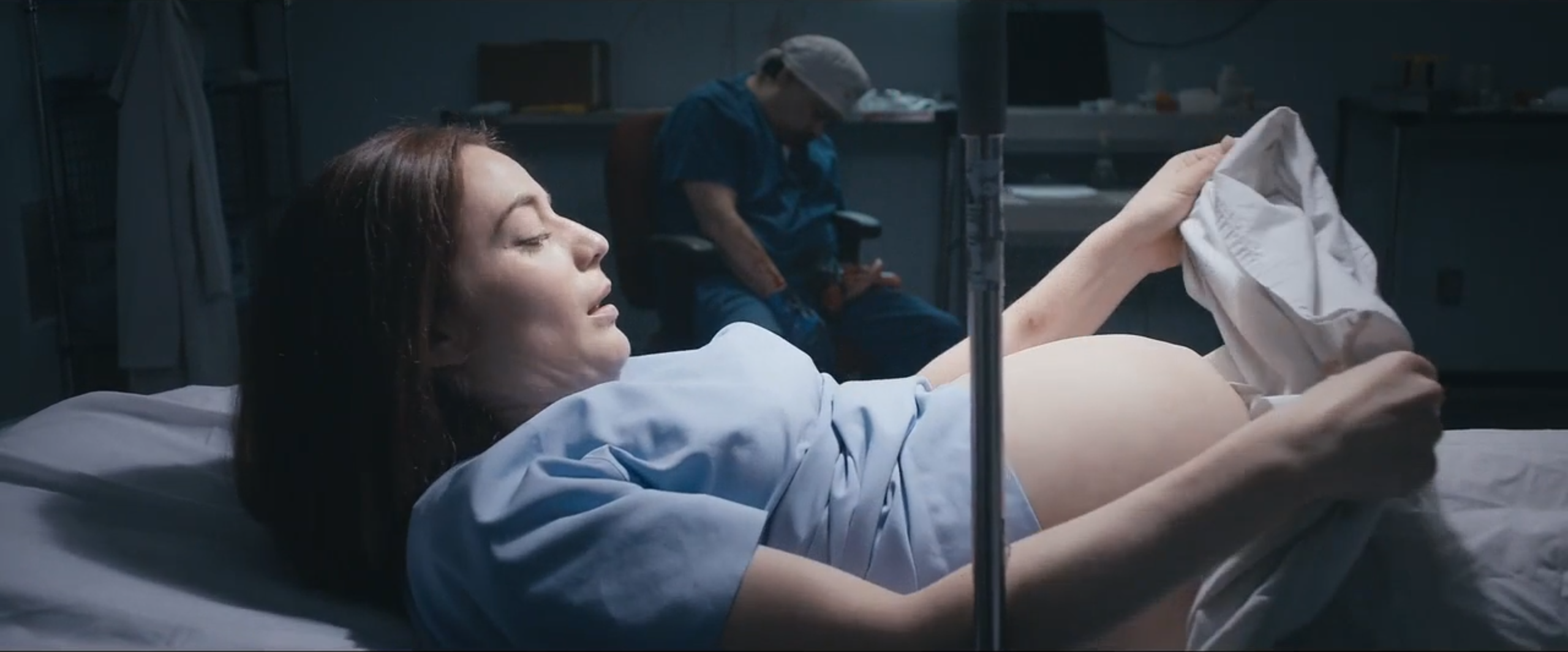 After shooting up, Ellie (Gilchrist), stumbles out on to the street and blacks out. She awakens later on an operating table in a strange hospital, where – not only is she somehow now pregnant, and about to receive a caesarean – but all the medical staff have been ripped to shreds by some… thing…