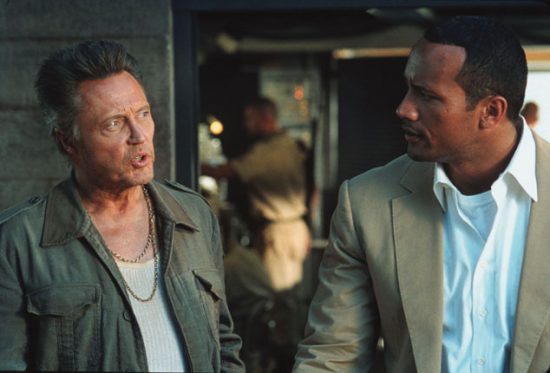 An early entry in Johnson’s catalogue, Welcome To The Jungle was also an early alert to the star potential of its hero. Johnson is a bounty hunter sent to the Amazon rainforest to retrieve a mobster’s wayward son (Sean William Scott, AKA Stifler from American Pie). Once there, Johnson realises Scott is searching for a long lost city and being bank-rolled/threatened/chased by Christopher Walken’s outright crazy local kingpin. There’s great fun to be had watching Walken and Johnson eyeball one another and even if that’s not for you, Johnson hits Sean William Scott in the face. A lot.