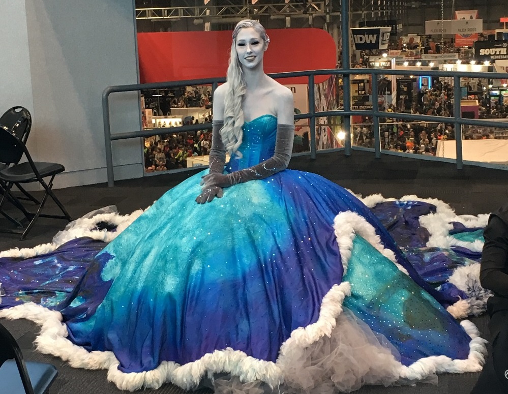 Cosplayers in ever more elaborate costumes walked by.
