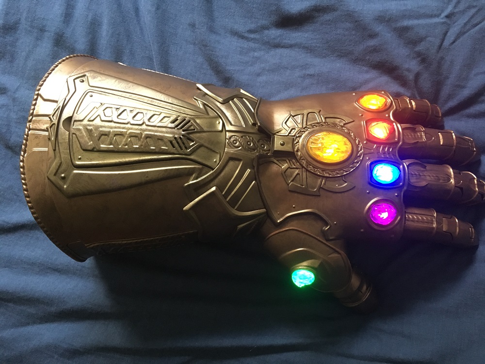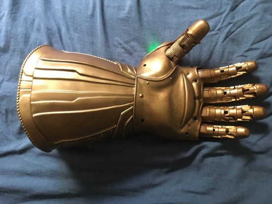 Needless to say, I quickly put it on and was welcomed with a lovely glow from all the Infinity Gems along with a glorious, ominous sound as it powered up. I clicked my fingers and everything went a bit weird. I brought everything back to normal and made myself a simple copy of the Gauntlet to play with.* I told Thanos to stop sending me items of infinite power and I think he finally got the message.