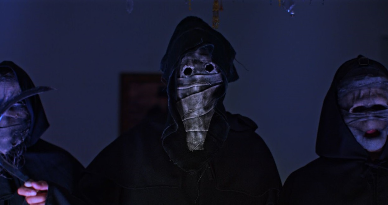 First debuting at FrightFest’s New Blood strand in 2016, James Crow’s Brit-horror House of Salem finally gets a DVD release. Josh (Liam Kelly) is a young child with special needs, being left in the care of a teenage babysitter while his parents go for an evening out. As she puts him to bed she teases him that he is getting a bit old for taking a cuddly toy to sleep with – a cuddly lamb – but he is adamant that he needs it and she acquiesces, leaving him to sleep and returning downstairs to indulge in the grand babysitter tradition of chatting on the phone. The peace of a domestic slumbering evening is about to be broken, however, as a group of creepily masked intruders make their way into the home, intent on snatching the boy. So far it’s not that different from any number of other home intrusion thrillers we’ve seen, except Josh hears a spectral warning just before the attack, and attempts to hide and evade his pursuers while his babysitter bravely tries to defend him, but it’s no use, and he is soon in the bag.