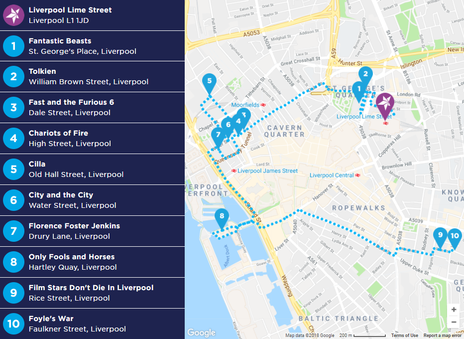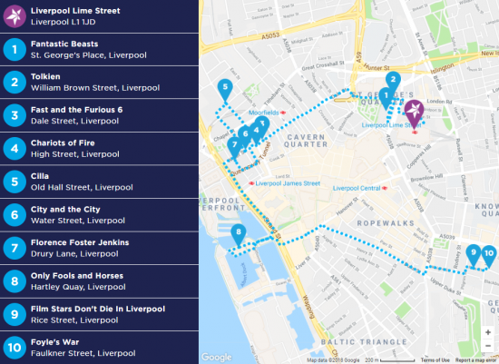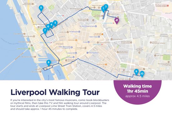 In Liverpool, the journey begins at Liverpool Lime Street station and takes in iconic locations that have appeared in popular film and TV shows such as Fantastic Beasts and Where To Find Them, Fast and the Furious 6 and Only Fools and Horses. Covering four and half miles, the route can be completed in around one hour and forty-two minutes.