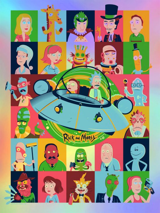 - Rick and Morty Foil Variant by Dave Perillo Screen print 18 x 24 inches Hand-numbered edition of 50 $50