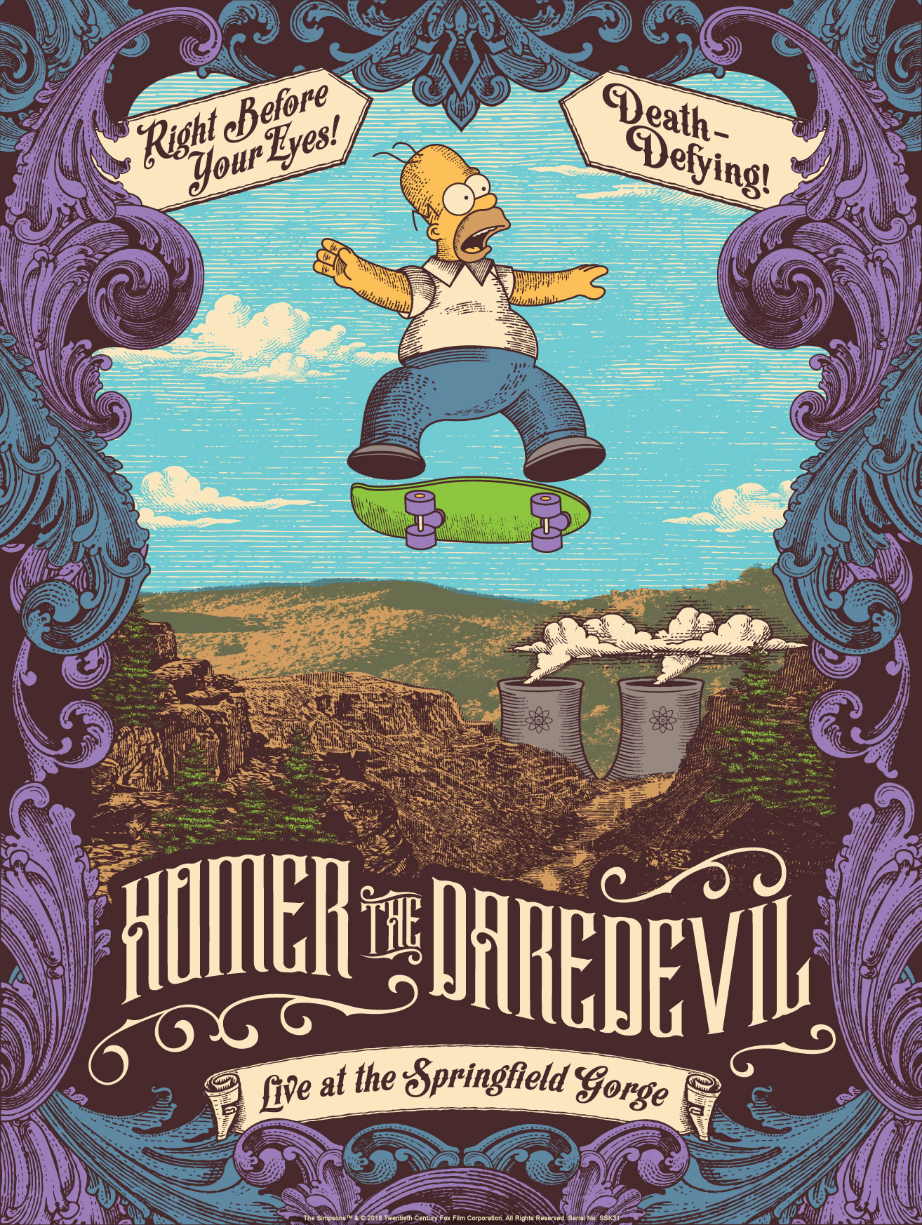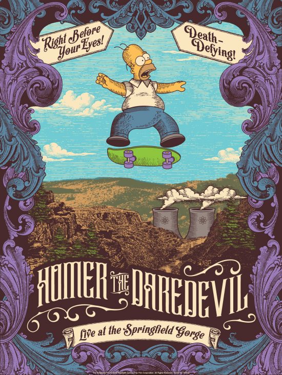 - Homer the Daredevil by Justin Helton Screen print 18 x 24 inches Hand-numbered edition of 150 $50 Licensed by Acme Archives & 20th Century Fox