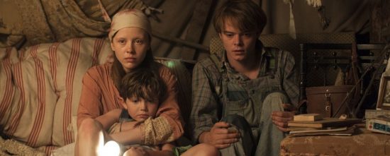 This is the directorial debut of Sergio G. Sánchez, but I am sure many film-lovers, especially horror fans, will already be familiar with his name as he penned the delightfully creepy The Orphanage. Here he both writes and directs in a strong, emotional story which combines thriller, family drama and horror elements. An ill mother (Nicola Harrison) brings her four children, Jack (George MacKay), Billy (Charlie Heaton), Jane (Mia Goth) and Sam (Matthew Stagg) back to her isolated and dilapidated family home, near a small town in rural America. The home has lain empty for decades, but it is as if it was “waiting for them” as the voice-over comments. It’s clear the family has been through some trauma, they are all damaged and marked by it, but their mother draws a line in the dust on the floor and declares to them that when they cross over this they leave their troubles and past behind them, they move into their future, free of their history, and as part of that they change their family surname to match that of the old family home: Marrowbone.