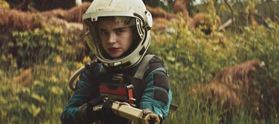 I mentioned the Western tropes that are woven into Prospect, and that extends beyond a science fiction version of those old-time prospectors into the style – Ezra (Pedro Pascal), one of the others who try to get the jump on Cee and Damon, talks in a very stylised, loquacious manner, the verbose style used for more than a few Western characters who like to talk all high-falutin’. Pascal, who you may have seen in Game of Thrones or Kingsman 2, delivers a very nuanced take on his character, taking him from the verbally dextrous but ruthless bushwhacker to something more as the film progresses, crafting a believable, three-dimensional character rather than just some cut-out villain. Stand-out performance here, however, is Sophie Thatcher as Cee; Cee is in almost every single scene in the film, she is its spine, carrying the entire movie, and it is a terrific performance, all the more remarkable given it is her film debut and she was only seventeen years old at the time.