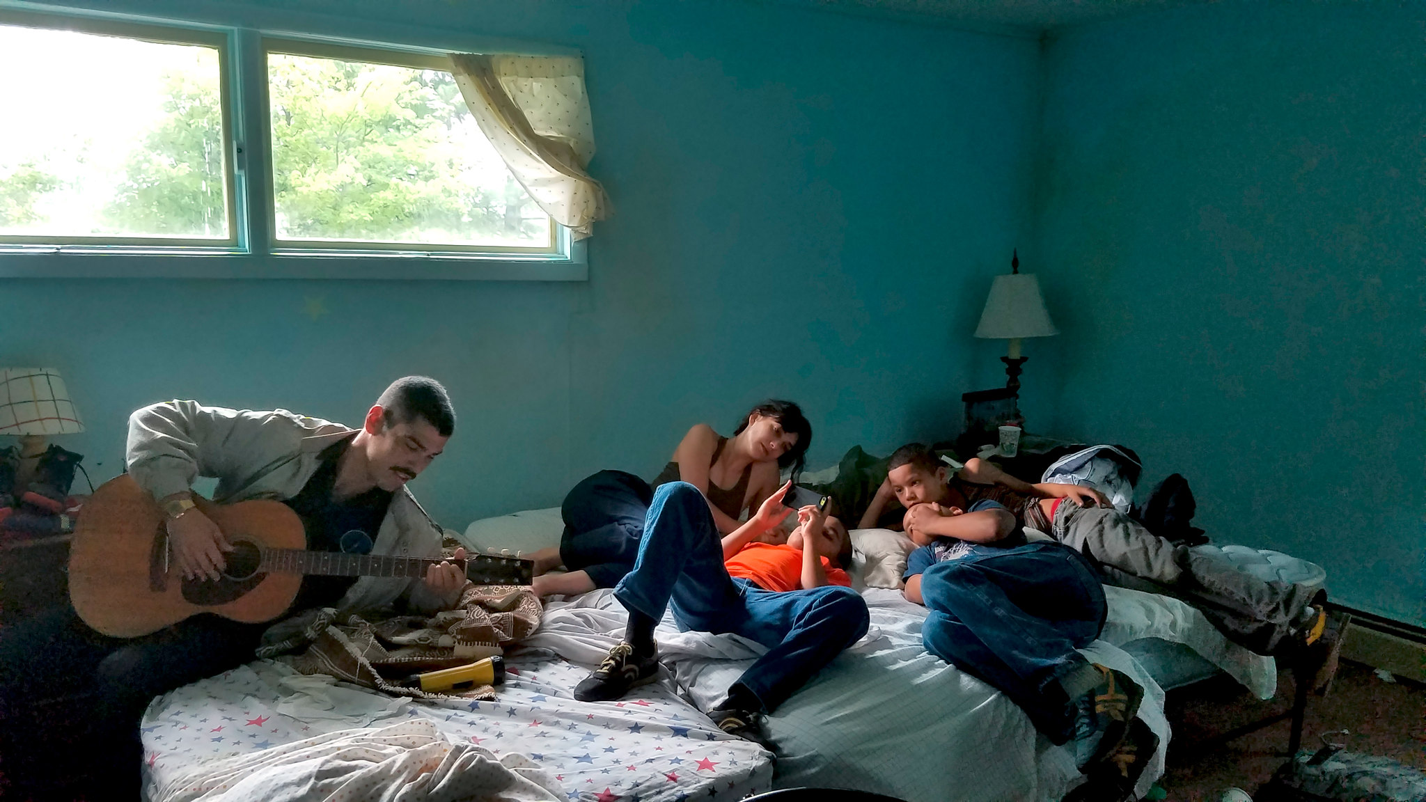 Raúl Castillo, Sheila Vand, Josiah Gabriel, Isaiah Kristian, Evan Rosado on the set of We the Animals