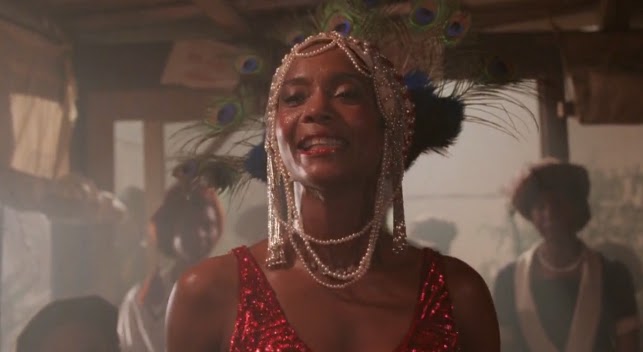 The use of comedy throughout undermines Celie’s suffering. It makes the film deeply unserious. Mister goes from being a tyrant to being a buffoon way too quickly. Even his attempted rape of Nettie is played with a comic beat. Shug Avery’s arrival reduces him to an image of foolishness also, hitting his head on pots and pans as he attempts to make her breakfast which is burning in an exaggeration that beggars belief. The comedy is too broad; not actually that funny and it lets the audience and Mister off the hook. Oprah Winfrey as Sophia is supposed to be an unstoppable battle axe, a force of life but her war with Harpo, Mister’s eldest son, is taken too lightly as he falls through the ceiling of their new nightspot, cack-handedly attempting repairs. Then when the darkness returns, as it occasionally does with Sophia’s beating at the hands of the white townsfolk, we’re unprepared. Even this savage moment is presaged by an almost comic build up. ‘Oh no Miss Sophia!’ Lawrence Fishburne’s guitarist shouts.