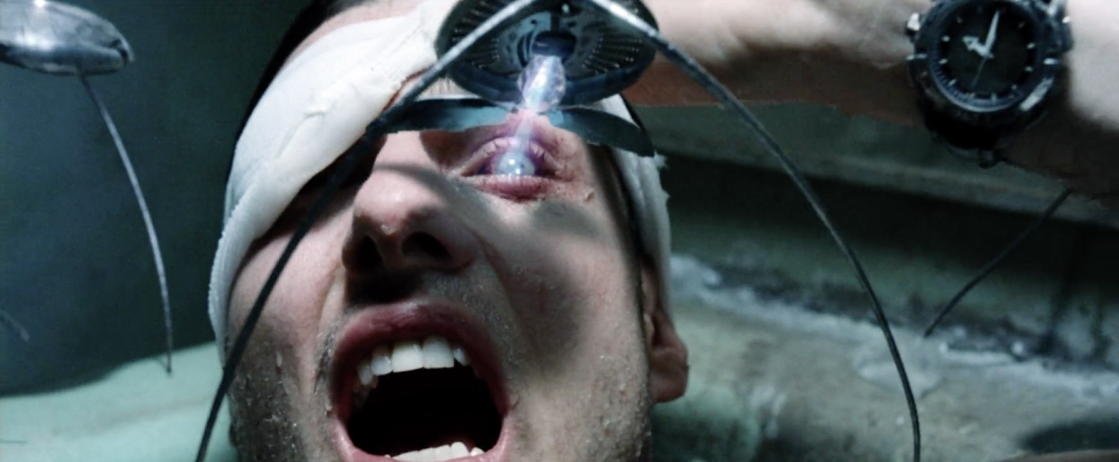 Anderton has the tables turned on him when the pre-cogs predict he will commit a murder of a man he has never met and he will now be hunted by his own team. This classic reversal is in line with the feel of the film. Although technically in colour, the film is so desaturated and overlit as to almost count as black and white. As A.I. was in many ways an old studio melodrama, so Minority Report hails back to the classic noirs which Spielberg watched in preparation to filming. And yet the film can’t really settle on a tone. There are so many elements contending. The action thriller aspect is given two or three set pieces and then largely disappears. There are grotesque comic cameos from Peter Stormare and Tim Blake Nelson, and a really strange swerve into gross-out comedy that would be better placed in a Farrelly Brothers film. This all clashes with the more serious themes of grief and loss, predestination versus a lack of free will.