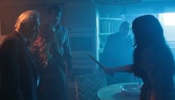 After suffering an untimely loss, Alex (La Piana) and her husband Petri (Urb) visit California for a much-needed break from reality. At an unassuming rental, they meet the mysterious Russell Marsh (Miano). Marsh introduces them to the oddly enthusiastic locals, fixes them a lavish meal and invites them out on his luxury boat. Little do they know that beneath Mr. Marsh’s thin veneer of avuncular charm lurks a dark devotion to an archaic evil. A wickedly warped twist on the classic Cthulhu mythos, The Deep Ones is what it looks like when Rosemary’s Baby undergoes the Innsmouth Transformation.