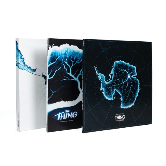 The Limited Edition Bundle including John Carpenter’s The Thing Original Motion Picture Score By Ennio Morricone and Lost Cues: The Thing By John Carpenter, Cody Carpenter, and Daniel Davies housed in a slipcase featuring new artwork by Phantom City Creative.
