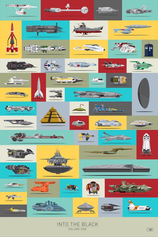 I particularly like the “Into the Black” Vol 1 by Scott Park which shows so many different fictional spacecraft.