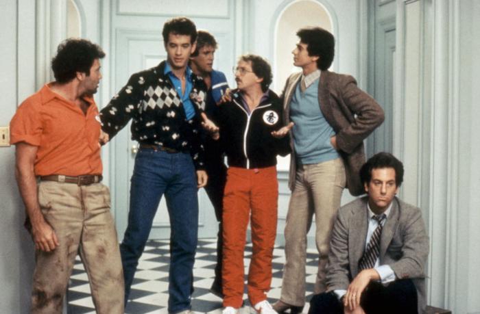 BACHELOR PARTY, Bradford Bancroft, Tom Hanks, Michael Dudikoff, Barry Diamond, Adrian Zmed, William Tepper, 1984.