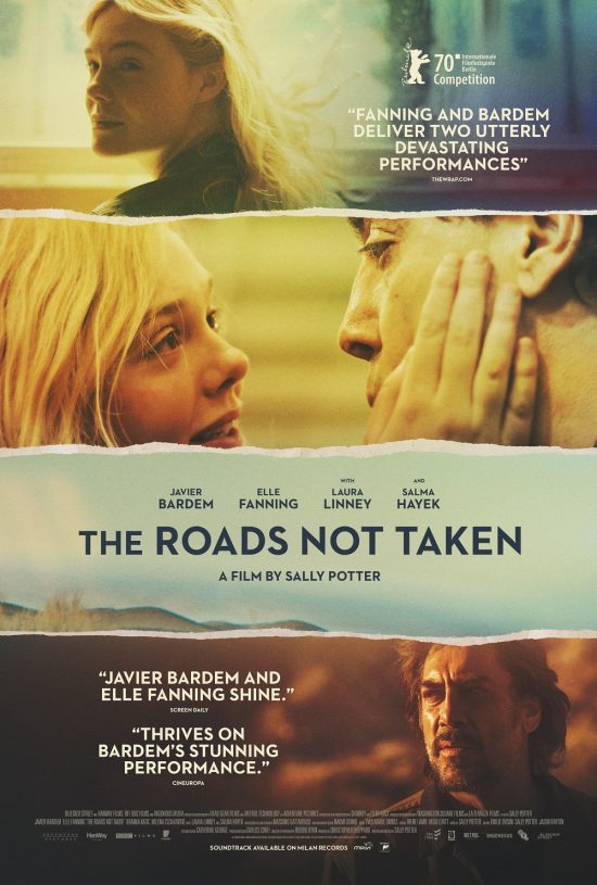 Universal has released the first official UK trailer and poster for acclaimed director Sally Potter’s new film The Roads Not Taken, featuring a remarkable cast including Javier Bardem (Skyfall, Vicky Cristina Barcelona, No Country For Old Men), Elle Fanning (The Beguiled, Neon Demon, Maleficent), Salma Hayek (Tale of Tales, Frida, Once Upon a Time in Mexico) and Laura Linney (Ozark, Sully, Nocturnal Animals), opening in UK and Irish cinemas on 11 September 2020.