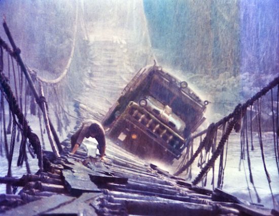 The tension as the men begin their perilous journey is enough to bring the audience out in a sweat. Every creak, groan and engine roar adds layer upon layer of fear and anticipation. The scenes involving getting the trucks across a rickety bridge have now entered into cinema folklore and it is easy to see why. The technical feat required to create those scenes with practical effects would barely be attempted by but a handful of filmmakers alive today. The budgets would be astronomic and they would be utilising more than their fair share of green screens to recreate them. How Friedkin and his crew managed to accomplish such a feat without the aid of CGI is something that is quite astonishing. For a film that is over 40 years old, the suspense stands up to anything that is being made in the modern era.