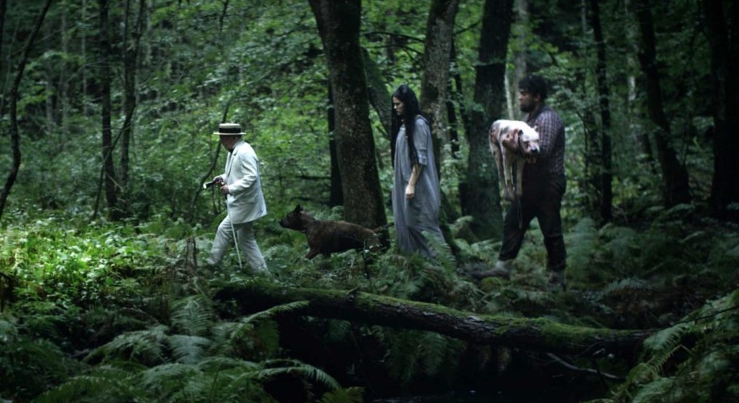 A husband and wife, Tobias (Edlund) and Ellin (Gallon), take a post-tragedy road trip to try and reconnect and heal. Deciding to camp in the middle of nowhere, in the middle of the night, they are menaced by some carnival rejects led by a scary old dude in a white suit (Belli) and a straw boater who come creeping out of the foggy forest.