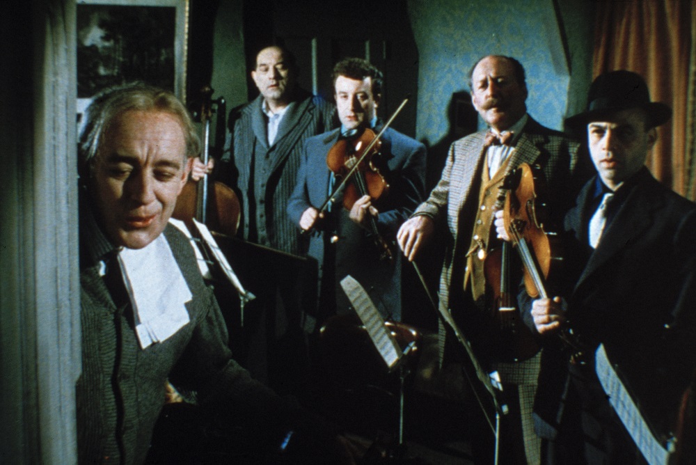 THE LADYKILLERS follows the hilarious capers of a group of small-time crooks, taking on more they can handle in the form of their sweet, but slightly dotty, elderly landlady Mrs Wilberforce (BAFTA Award-winning actress Katie Johnson; How To Murder A Rich Uncle). This group of seedy misfits are planning a security van robbery and rent a room from Mrs Wilberforce in her rickety Victorian house next to King’s Cross station from which to base their operation. To conceal their true purpose, they pose as a string quartet, though they cannot play a note and are in fact miming to a recording of Boccherini’s Minuet. The gang pull off the robbery but none of them could have predicted that their greatest obstacle to escaping with the loot would be their tiny hostess.