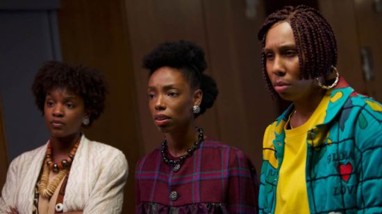 Yaani King Mondschein, Elle Lorraine, and Lena Waithe appears in Bad Hair by Justin Simien, an official selection of the Midnight program at the 2020 Sundance Film Festival. Courtesy of Sundance Institute.