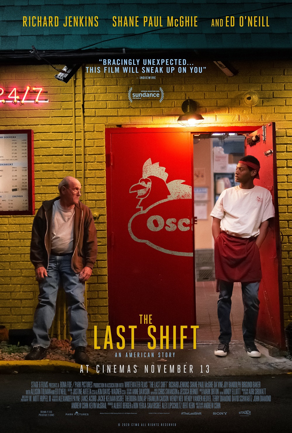 The Last Shift is an American story about two men struggling in the same town, while worlds apart. Stanley (Richard Jenkins), an ageing fast-food worker, plans to call it quits after 38 years on the graveyard shift at Oscar’s Chicken and Fish. His last weekend takes a turn while training his replacement, Jevon (Shane Paul McGhie), a talented but stalled young writer whose provocative politics keep landing him in trouble. These two who share little in common are brought together through circumstance. Stanley, a high school dropout who has watched life pass by his drive-through window, proudly details the nuances of the job. While Jevon, a columnist who’s too smart to be flipping patties, contends their labour is being exploited. A flicker of comradery sparks during the long overnight hours in a quiet kitchen.