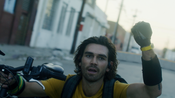 In the terrifying thriller SONGBIRD, the COVID-23 virus has mutated and the world is in its fourth year of lockdown. Infected Americans are ripped from their homes and forced into quarantine camps known as Q-Zones, from which there is no escape, as a few brave souls fight back against the forces of oppression. Amid this dystopian landscape, a fearless courier, Nico (KJ Apa), who’s immune to the deadly pathogen, finds hope and love with Sara (Sofia Carson), though her lockdown prohibits them from physical contact. When Sara is believed to have become infected, Nico races desperately across the barren streets of Los Angeles in search of the only thing that can save her from imprisonment … or worse.