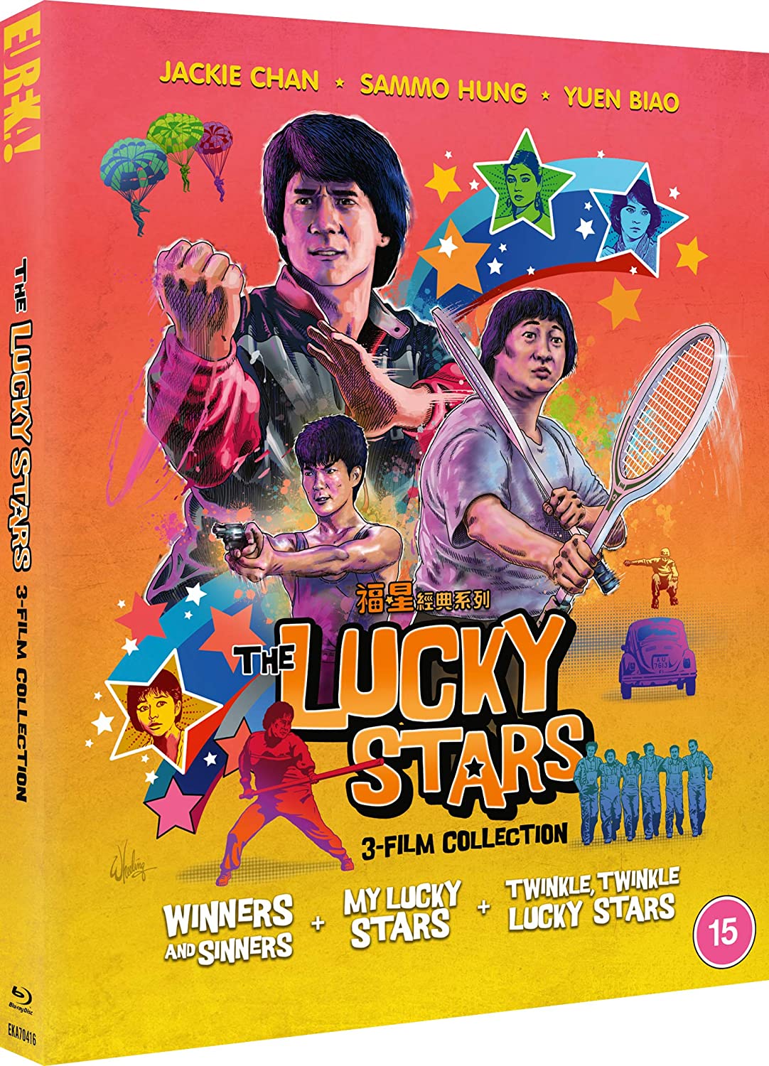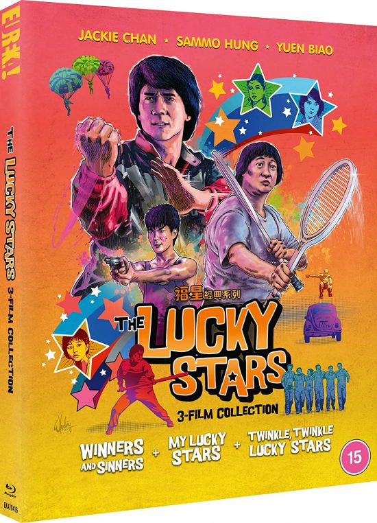 Eureka Entertainment is releasing The Lucky Stars 3-Film Collection: Winners and Sinners; My Lucky Stars; and Twinkle, Twinkle Lucky Stars. Three Action Comedy Classics starring Jackie Chan, Sammo Hung and Yuen Biao will be presented on Blu-ray from brand new restorations as a part of the Eureka Classics range from 22 March 2021. The first print run of 2000 copies will feature a Limited-Edition O-card Slipcase and Collector’s Booklet.