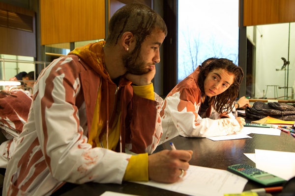 Justine, her gay male room, Adrien (Oufella), and the rest of the first year are subjected to an intense rite of passage — French veterinary school seems super intense!! — that sees the hard-partying equalised by having their beds tossed out the window, getting soaked in blood, crawling around car parks and forced to down shots with rabbit kidney chasers.