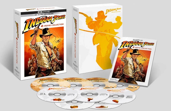 Relive the unforgettable exploits of world-renowned, globetrotting hero Indiana Jones in spectacular 4K Ultra HD with the brand new nine-disc Indiana Jones 4-Movie Collection. Each film is presented on 4K Ultra HD Blu-ray™ Disc with original theatrical trailers and on standard Blu-ray™. The set includes a double-sided map and an additional Blu-ray™ with seven hours of previously released bonus content.