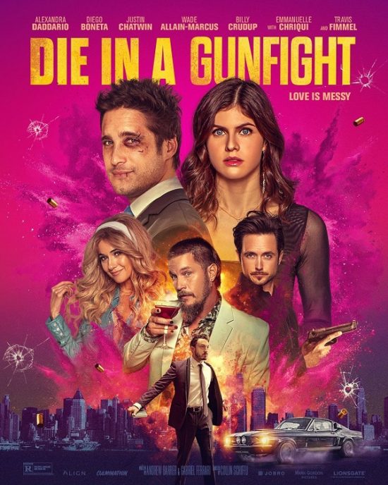 A visually stunning movie with an exciting mix of action, humor, and heart, DIE IN A GUNFIGHT follows Mary (Alexandra Daddario) and Ben (Diego Boneta), the star-crossed black sheep of two powerful families engaged in a centuries-long feud. When Mary and Ben reignite an affair after many years apart, their forbidden love triggers a dangerous collision of schemers and killers. Fists and bullets fly, but maybe, just maybe, love will conquer all.