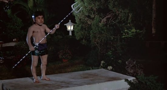 Some of the nuts and bolts action are done very well. The shootouts, the fight in the Dojo, a short boat chase, calling back to Live and Let Die. There is an impressive car chase, which features the highpoint of the whole film: a corkscrew jump over a river. But this is moronically ruined by the unbelievably stupid use of a slide whistle on the soundtrack. Add to this the unwelcome return of JW Pepper (Clifton James) whose racist outbursts about pointy heads is clearly supposed to be endearing in an Alf Garnett kind of way. His presence during one of the best parts of the film shows up the filmmaker’s lack of confidence in the action.