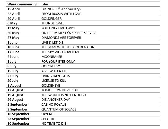 60 YEARS OF BOND – RETROSPECTIVE PROGRAMME