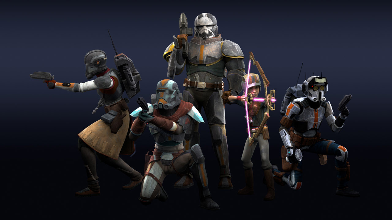 Dee Bradley Baker stars as the Bad Batch, a squad of elite clone troopers with genetic mutations. He also voices other clones in the series, reprising his role from The Clone Wars. Michelle Ang stars as Omega, a female clone that joined the squad in season 1.
