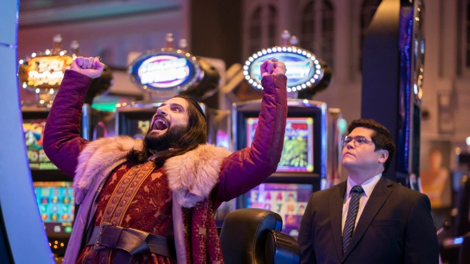 “WHAT WE DO IN THE SHADOWS” — “The Casino” — Season 3, Episode 4 (Airs September 16) — Pictured: Kayvan Novak as Nandor, Harvey Guillén as Guillermo. CR: Russ Martin: FX