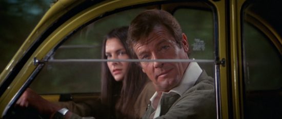 Moore’s participation meant that the more gritty elements were underplayed. He was unhappy about kicking a car off a cliff, feeling it wasn’t consistent with his debonair spy. Moore preferred to ingratiate himself with audiences with as many reaction shots and looks to camera as he could fit in. Moore’s limitations also mean that the relationship with Carole Bouquet’s avenging Malina never ignites. It doesn’t help that Bouquet plays her apparently rage-driven avenger with a sodden dead-eyed boredom. The only thing remotely active in her performance is her crossbow. Her voice throughout also has an ADR in another room quality.