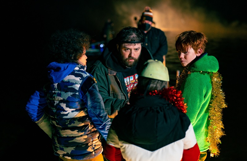 Jason Eisener, center, with (L-R) Dominic Mariche, Asher Grayson and Ben Tector on the set of ‘Kids vs Aliens.’ (Photo credit: Mike Tompkins / courtesy of Outer Space Pictures LTD.)