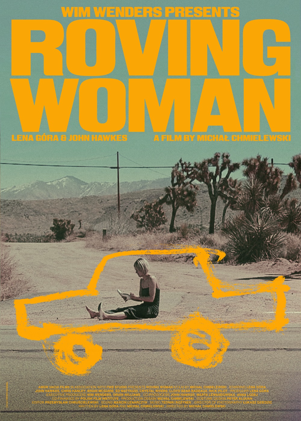 A Mojave desert shot road film with a female lead, the driving force behind the project is Polish-American writer, producer, actress Lena Góra and is a debut film from the director Michał Chmielewski. ROVING WOMAN is executive produced by Wim Wenders and Orian Williams and is a study of a woman finding her way.