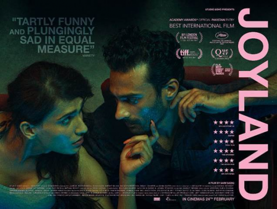 UK distributor Studio Soho has released the new trailer and poster for Saim Sadiq’s debut feature Joyland, the first film by a Pakistani director to win at the Cannes Film Festival 2022. Alongside its jury prize win, JOYLAND received the Queer Palme Award at Cannes as well as Special Jury Mention at SXSW and an Honourable Mention for the Sutherland Award at the London Film Festival. JOYLAND is the first feature film from Pakistan to make the shortlist for the Academy Awards.