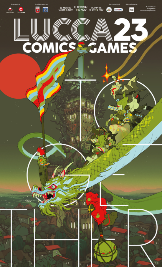 Lucca Comics & Games have today launched the poster and festival trailer for the 2023 festival which is to be held from November 1st to 5th in the famous Italian city. The 2023 festival theme is ‘Together’. This is the 57th edition of what is considered the biggest pop culture event in Europe.World-renowned Israeli twins, cartoonist Asaf Hanuka and The New Yorker illustrator Tomer Hanuka, were selected as this year’s poster creators. Faced with the theme ‘Together’ the twins decided to present themselves in a composition that has the symbolic richness of a Tarot card. An oriental dragon moves towards the towers of Lucca, wrapped in lush, decorated plants, descending as a line of light from the sky and knotted into a symbol of infinity to represent the vastness of the stories, art, drawing and passions shared by the festival’s heterogeneous characters. The twins collaborated on comics (“The Divine“, on texts by Boaz Lavie), concept art for animation (“A Waltz with Bashir“, by Ari Folman, the first animation nominated for the Oscar of Best Foreign Language Film in 2009), and on personal artistic projects (“The Moodies”). Last year Tolkien artist Ted Nasmith created the poster on the festival’s theme of ‘Hope’.Tomer Hanuka says, “There are so many ways of being together – sometimes you can even be together with others by being apart, alone with yourself“.