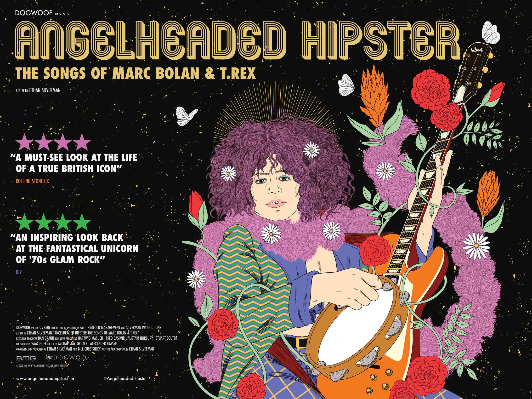 AngelHeaded Hipster, tells the story of the glam rock movements leader and early champion of punk Marc Bolan, had its world premiere at Tribeca Film Festival 2023. A BMG Production, written and directed by Ethan Silverman with producer Bill Curbishley, AngelHeaded Hipster is a celebration of Marc Bolan, combined with a behind-the-scenes look at the tribute album of the same name released in 2020.