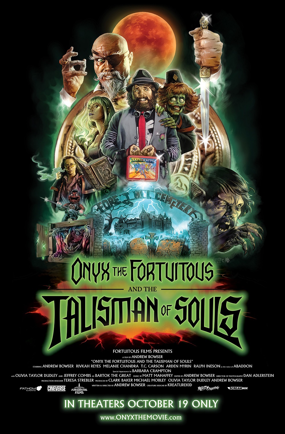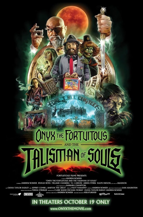 Cineverse and Fathom Events announced that the horror-comedy Onyx the Fortuitous and the Talisman of Souls will release exclusively in theaters for a one-night event on October 19. The film will show at 7:00pm & 10:00pm (local times) in theaters throughout the country, and fans will be treated to a special introduction from writer/director/star Andrew Bowser ahead of the film.