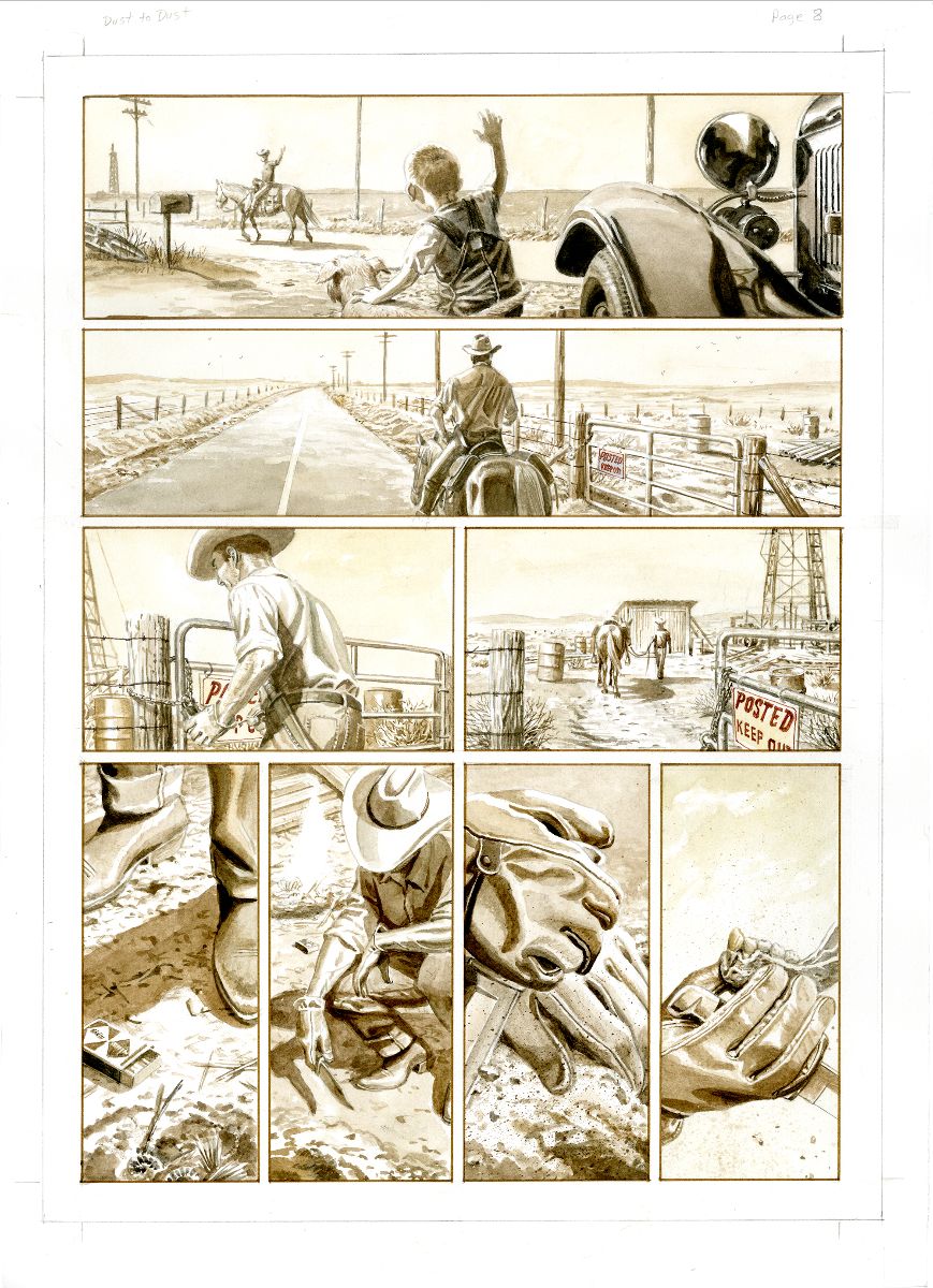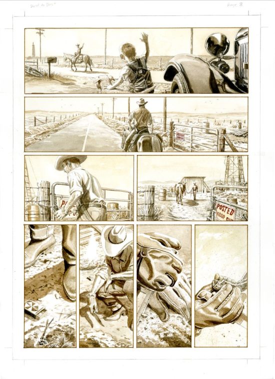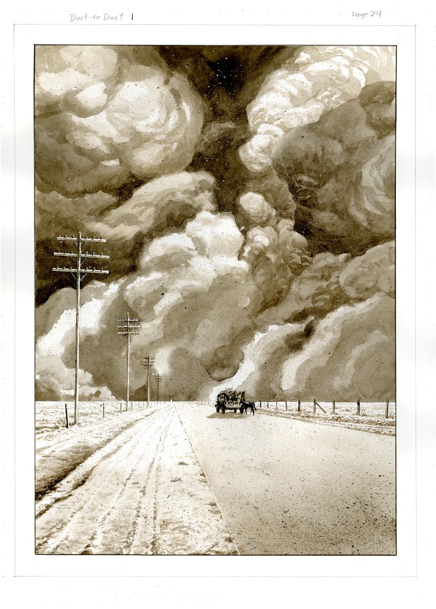 Bram added, “It must be 15 or 16 years ago now since I first met Jeff. We hit it right off over Dylan, John Prine, Sam Shepard, Raymond Carver, Goya, Otto Dix, and the movie No Country For Old Men. But when I told him I was an Okie, his eyes really lit up. He had this idea for a story that takes place in Oklahoma during the Dust Bowl. Jeff pitched me the basic concept and asked if I would be interested in writing this story with him about a world that is no more. It’s all there in his spectacular art, in the people, in their faces, in their eyes. You almost don’t even need the words. Jeff, I thank you so much! You are my friend and you are my hero. I have never seen anyone pull off such an incredible feat in all my life!”