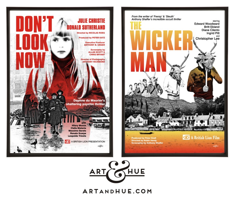 Available individually and as part of a pair with new Wicker Man poster, recreating the iconic double-bill that opened 50 years ago, discover the new “Don’t Look Now” pop art print online at artandhue.com/dln