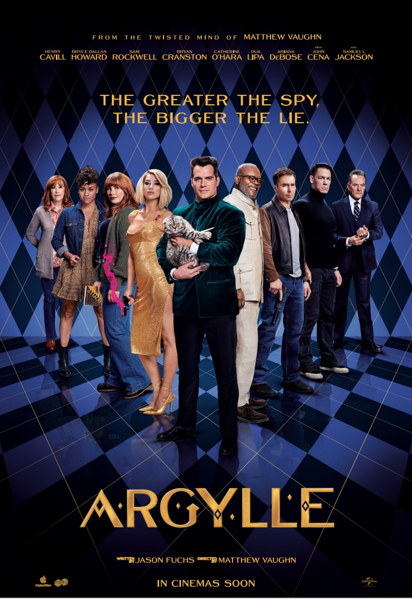 Argylle’s top-flight ensemble cast includes Henry Cavill (The Witcher), John Cena (Fast X), Oscar® winner Ariana DeBose (West Side Story), Grammy-winning pop superstar Dua Lipa (Barbie), Emmy winner and Oscar® nominee Bryan Cranston (Breaking Bad), Emmy winner and comedy icon Catherine O’Hara (Schitt’s Creek), Sofia Boutella (Rebel Moon), and the legendary Samuel L. Jackson.