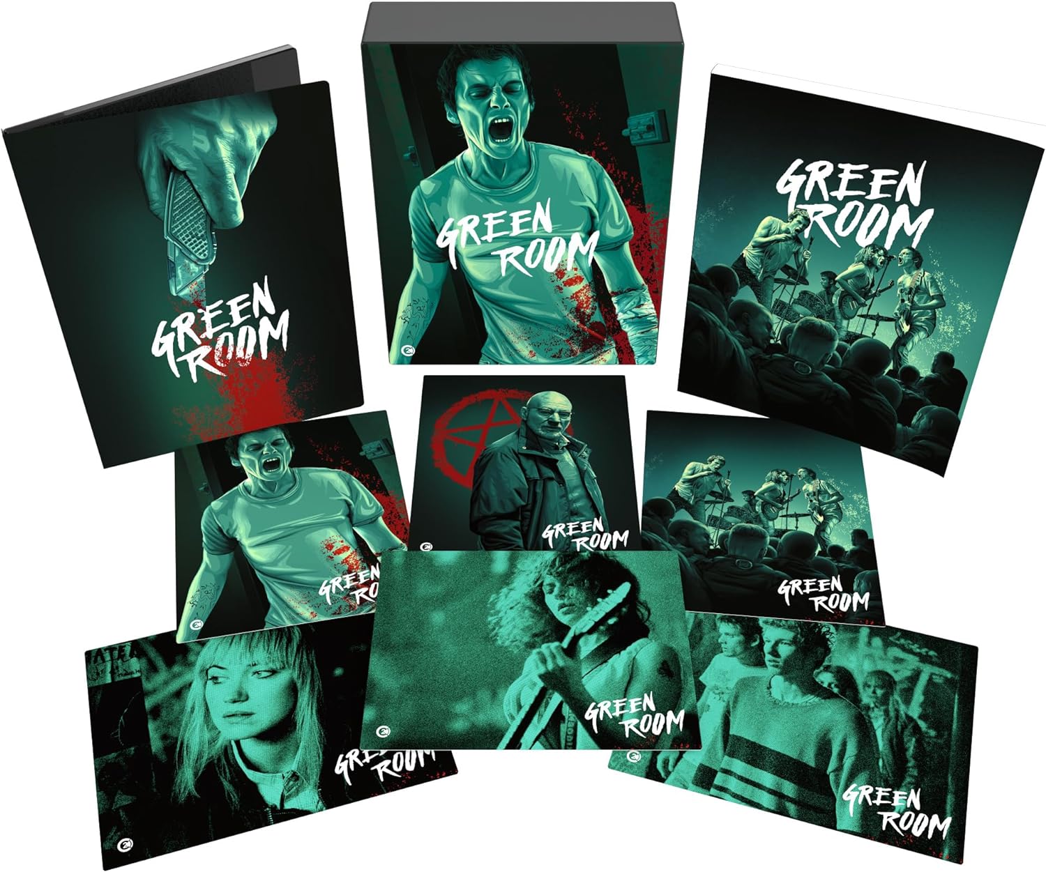 Green Room is presented as a dual format edition that includes the UHD and Blu-ray with the main feature and bonus features on both discs. The Limited Edition comes complete with a rigid slipcase, new artwork created by Adam Stothard and is accompanied by a 120-page book. The UHD is presented in Dolby Vision HDR, and the insightful special features include a new audio commentary and new interviews with writer–director Jeremy Saulnier, actor Callum Turner, composers Brooke & Will Blair and much more.