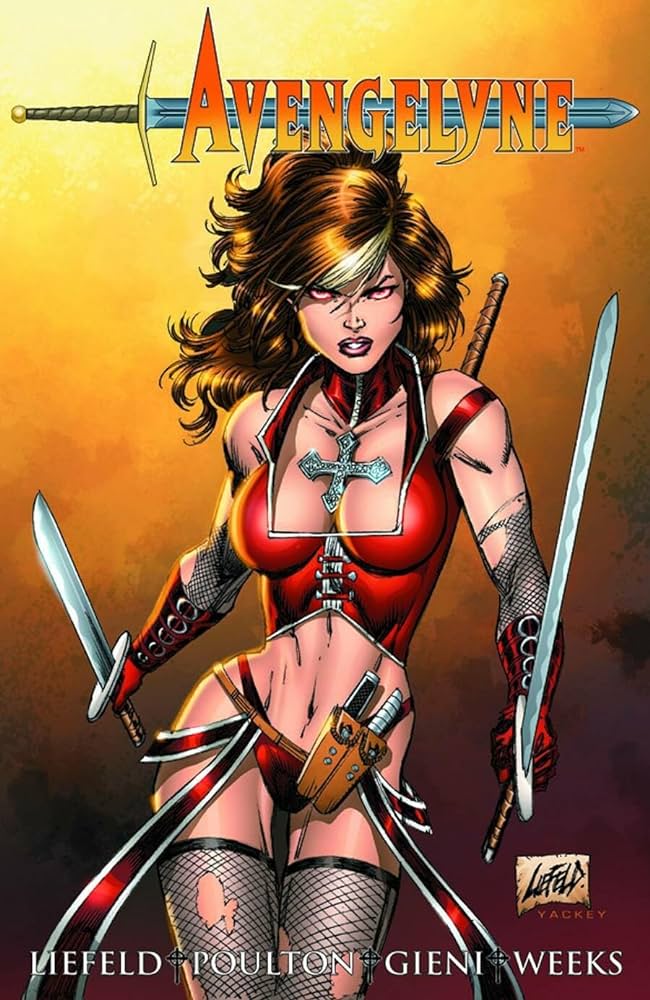 Avengelyne debuted in 1995 and centered on a fallen angel cast to Earth. She is entrusted to find and protect The One, a person who is the key to protecting humanity from demons and other monsters. Along with Liefeld, Cathy Christian and Tony Lobito are known for their work co-creating the character.