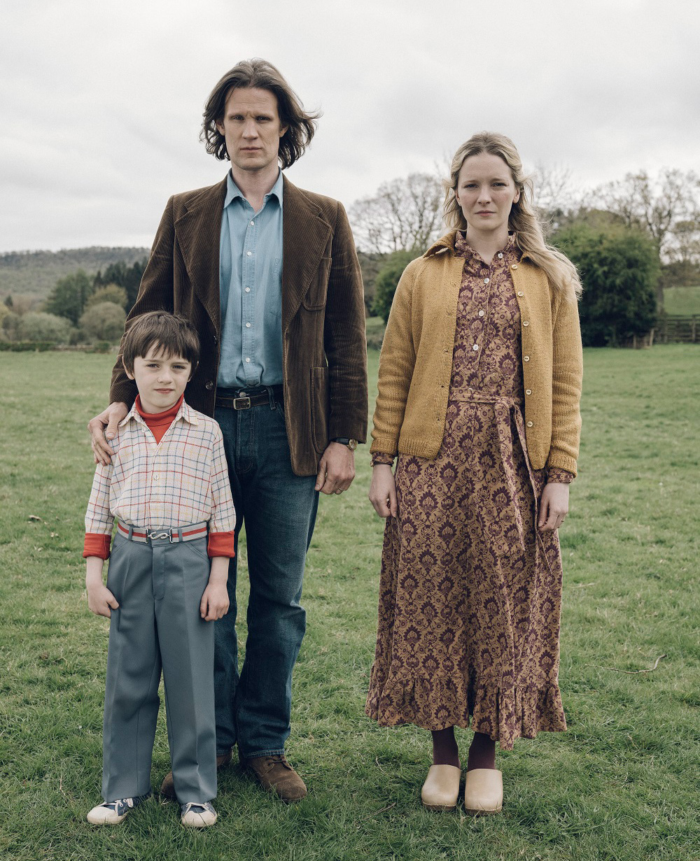 The Willoughbys from STARVE ACRE: Owen (Arthur Shaw), Richard (Matt Smith) and Juliette (Morfydd Clark). Photo by Chris Harris.