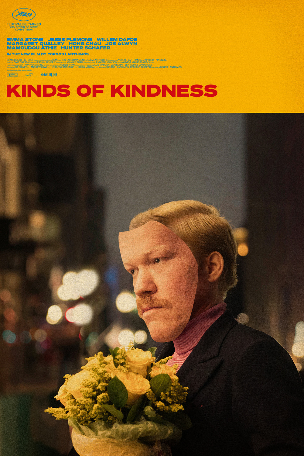 Searchlight Pictures presents, KINDS OF KINDNESS, directed by Academy Award® Nominee Yorgos Lanthimos. Two-time Academy Award® Winner Emma Stone stars alongside Academy Award® Nominee Jesse Plemons, Academy Award® Nominee Willem Dafoe, Margaret Qualley, Academy Award® Nominee Hong Chau, Joe Alwyn, Mamoudou Athie and Hunter Schafer.