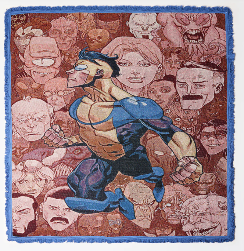 Okay, so you’ve probably picked up on the fact that I’m a big Invincible fan at this point. This year, Skybound offers up a new type of Invincible merchandise: an Invincible Blanket! This large quilted throw blanket will go perfect in your living room or bedroom… even if your wife disagrees! (And for the record, I’m not saying that my wife doesn’t love having a giant Invincible blanket in our living room. But I’m not NOT saying it, either!) Featuring artwork of Invincible in an action pose with the faces of his most notable supporting characters in the background, this high quality blanket will keep you warm while you’re binging the upcoming Season 3 of Invincible on Amazon Prime. It’s got a knitted style that lets it breathe, but it’s thick enough to keep you from getting chilly, and it’s even big enough for a tall guy like me. I love it!