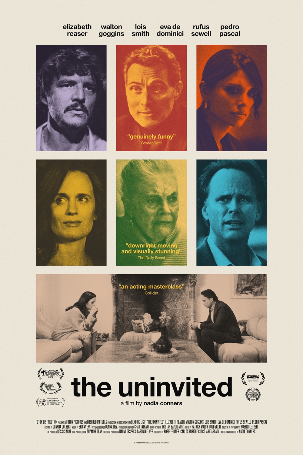 Directed by Nadia Conners (The 11th Hour, Tyrant) and produced by Rosie Fellner, Carlos Cuscó and Ari Taboada, THE UNINVITED stars Elizabeth Reaser (Twilight, The Handmaid’s Tale), Walton Goggins (The White Lotus, Django Unchained, The Hateful Eight, Justified), Pedro Pascal (Gladiator II, The Last of Us, Narcos, Game of Thrones), Lois Smith (Lady Bird, Minority Report, Marjorie Prime, Five Easy Pieces), Eva De Dominici (The Cleaning Lady) and Rufus Sewell (The Diplomat, Scoop).
